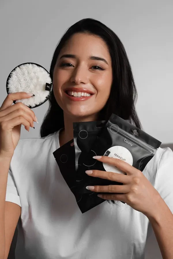 Material: Nuestros Coony Makeup Remover Pads están hechos de Microfibra Natural, suaves y agradables para la piel. Su superficie blanca y compacta reduce la irritación y la fricción.